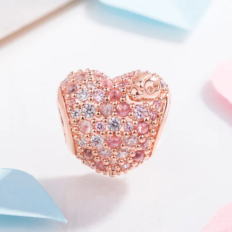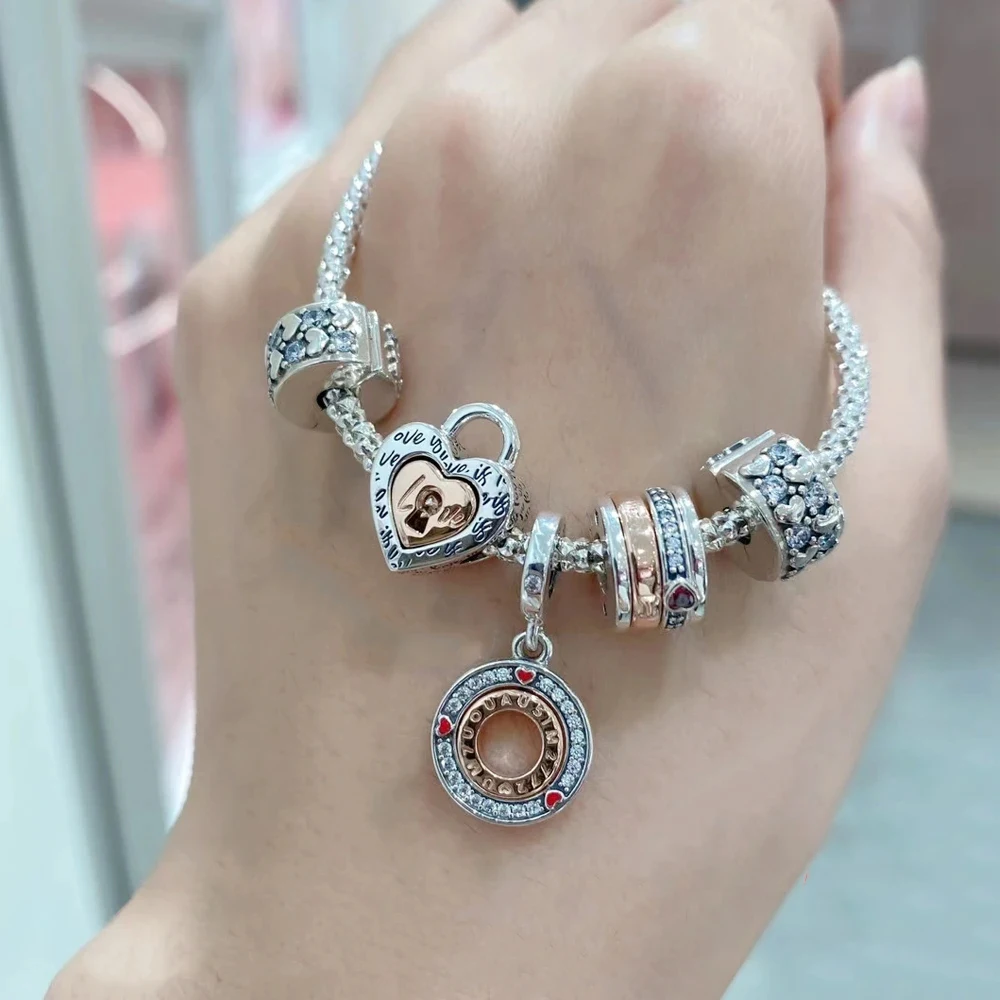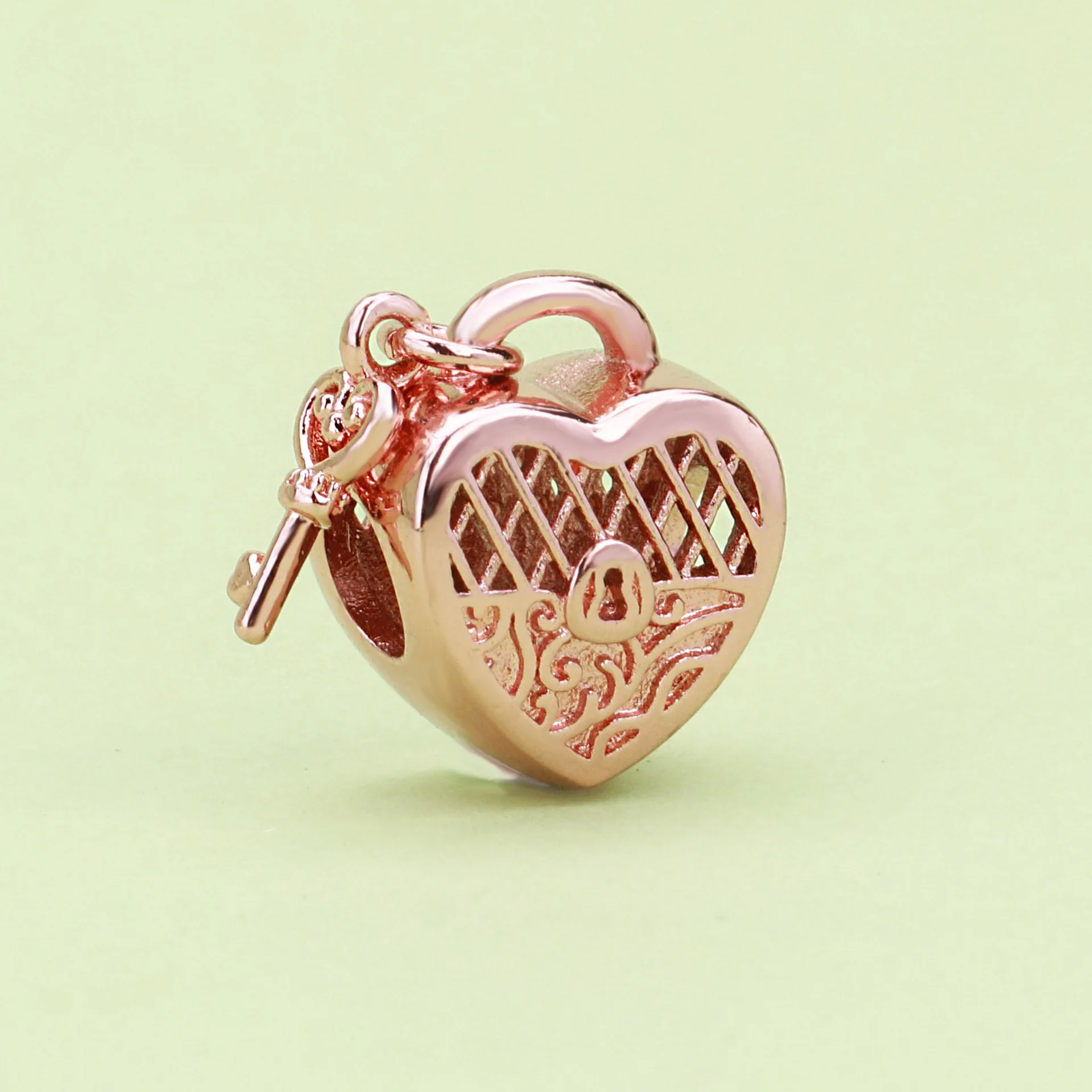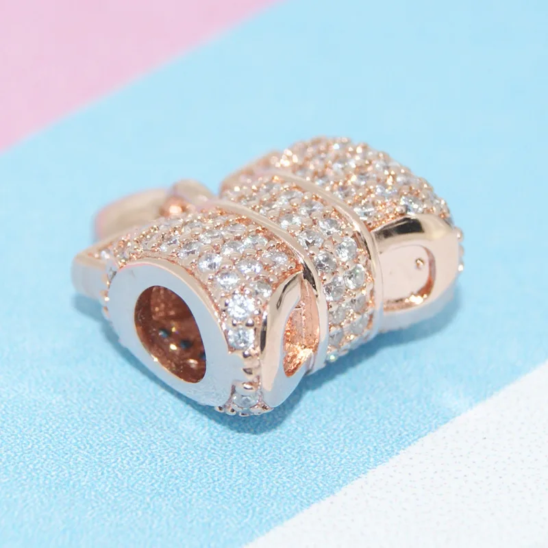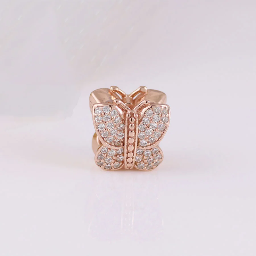 New 925 Rose Gold Plated Butterfly Feather Feather Lock Key Charms Beads Fit Original Pandora Bracelet DIY Fashion Woman Jewelry